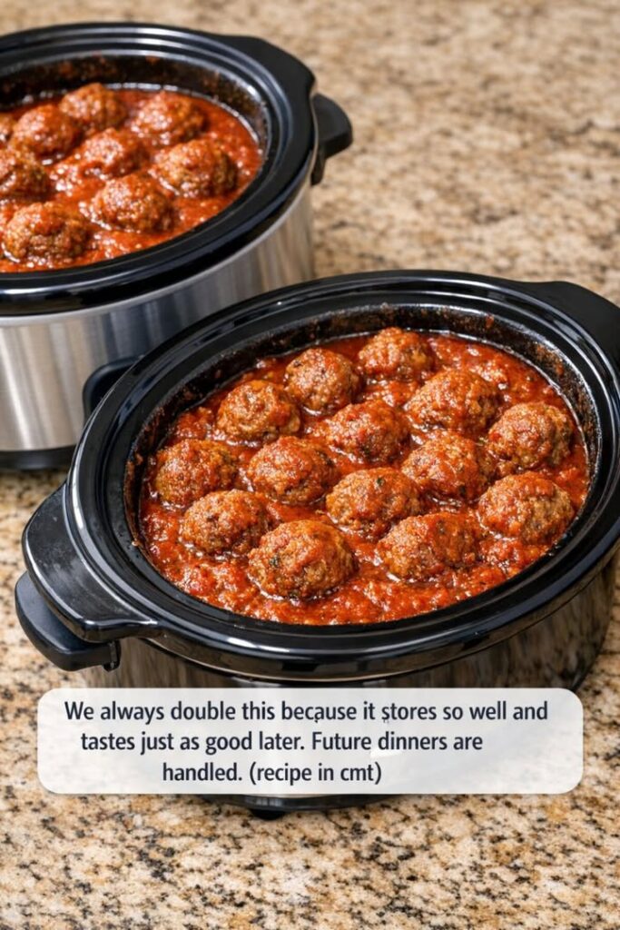I love that I can double or even triple the batch, stash it in the freezer, and know that a hearty, homemade meal is always waiting. On those nights when we’re running late from soccer practice, when a last-minute guest drops by, or when the winter chill makes everyone crave something cozy, all I do is pull out a bag, dump it in the slow cooker, and let it work its magic. By dinner time, the house smells incredible, the meatballs are perfectly tender, and everyone is asking for seconds.