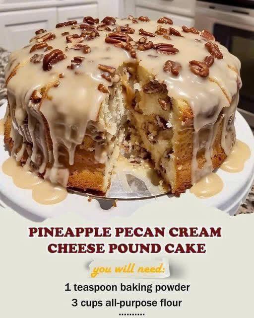 This Pineapple Pecan Cream Cheese Pound Cake is a decadent and moist dessert that combines the richness of cream cheese with the tropical sweetness of crushed pineapple and the crunch of toasted pecans. Topped with a tangy pineapple glaze, this cake is perfect for holidays, potlucks, or any special occasion. It’s a delightful twist on the classic pound cake that’s sure to become a family favorite.
